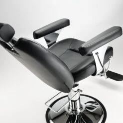 Fauteuil de Barbier simple et robuste en simili cuir noir, idéal pour une première implantation